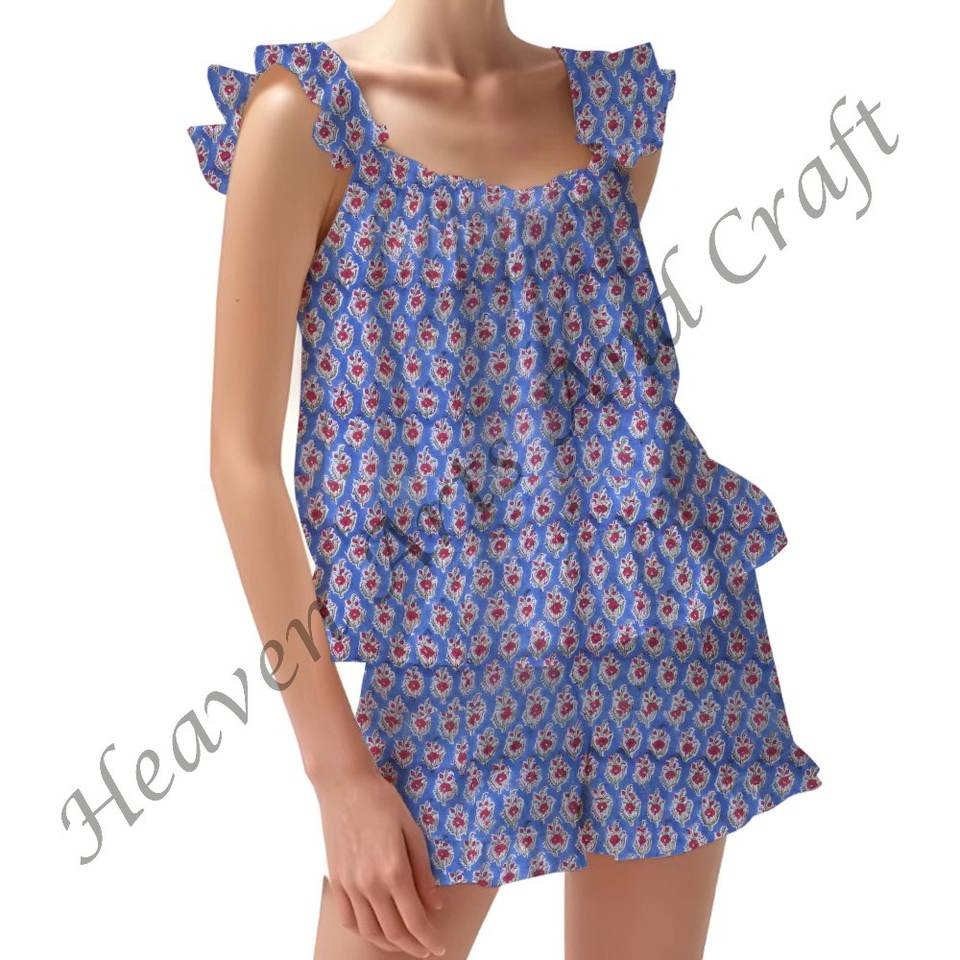 Nombre del producto:100% Algodón Impreso Ruffle Pijama Set