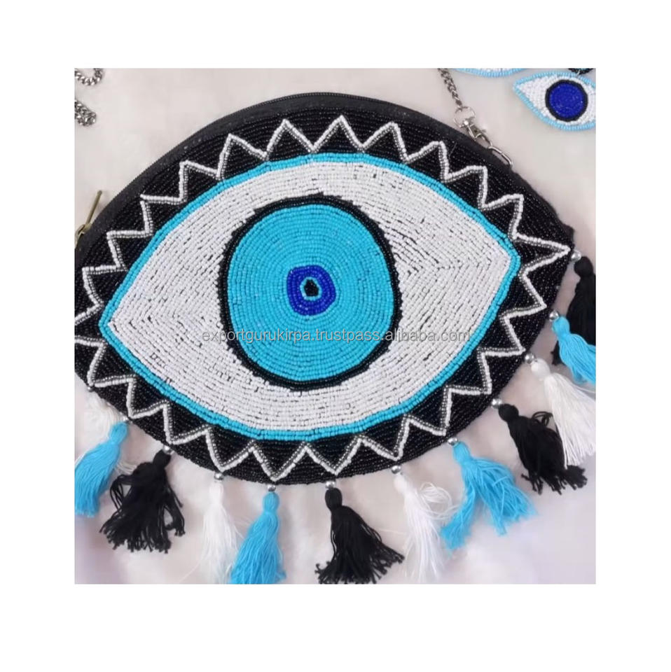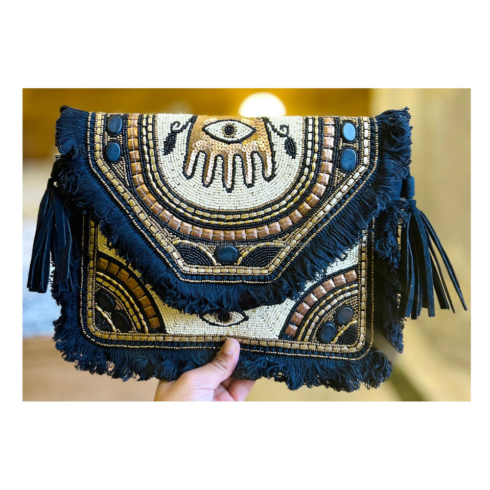 Bolso de Mano de Lona con Cuentas Hechas a Mano, Estilo Bohemio Indio, con Patrón Geométrico, Ecológico, para Mujer, Casual, para la Noche, Guru Kirpa Export