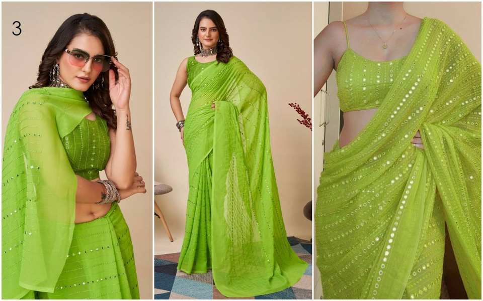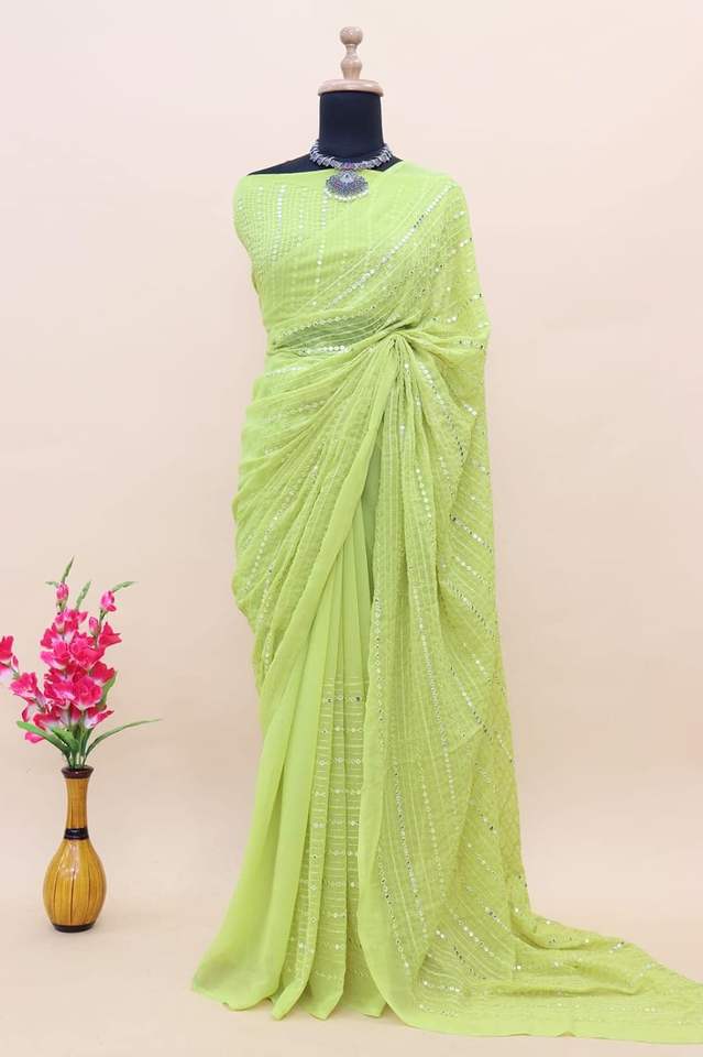 Indian Bollywood Exclusivo Elegante Sari Elegante Blusa de lujo Suave Georgette Tela Última moda Ropa étnica para fiestas de invierno
