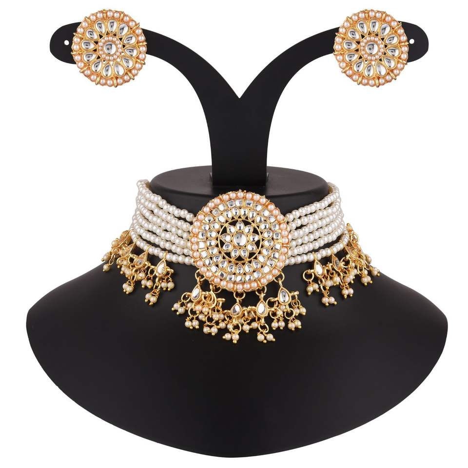 Diseño:Indian Faux perla con cuentas gargantilla collar conjunto