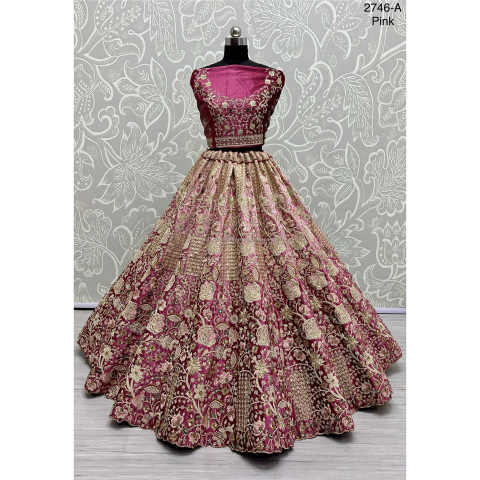 Colecciones de Novias Indias y Pakistaníes Fabzone FZBELLA, Atuendo de Boda de Terciopelo con Bordado Zarkhan para Novias