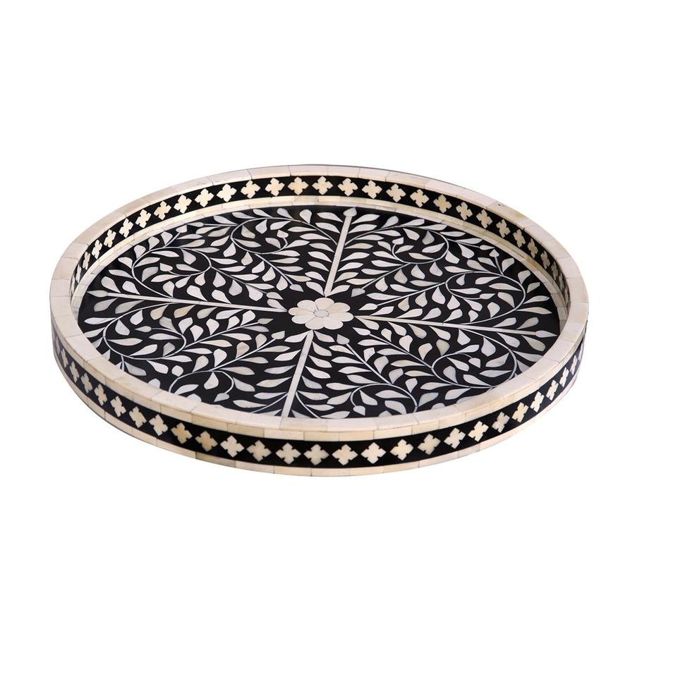 Bandeja Redonda de Hueso de Camello Indio, Decoración India y Bandejas de Madera, Diseño y Acabado Personalizados Disponibles