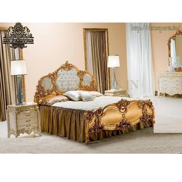 Indian Classical Style Gold Finish Tufted BedProduct name