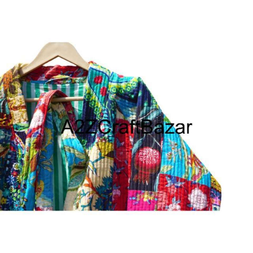 Chaqueta Formal Acolchada con Estampado Floral Reversible, 100% Algodón, Hecha a Mano, Elegante, para Mujeres y Niñas, para Eventos