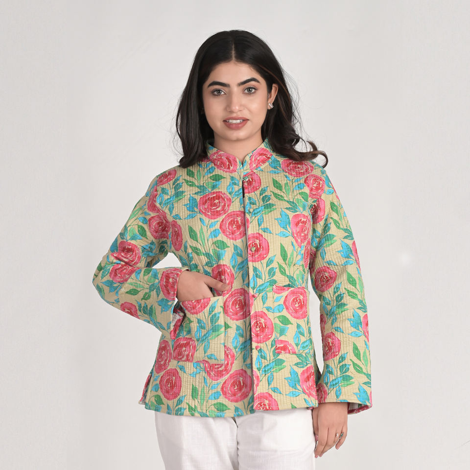 Chaquetas indias del invierno del algodón:Chaquetas reversibles hechas a mano del kantha del algodón