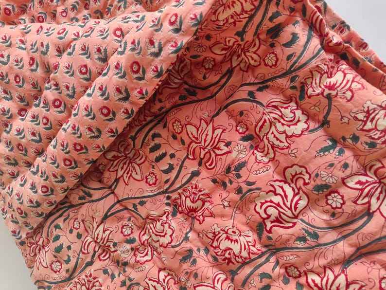 Colcha de Algodón Indio Razai, Estampado a Mano, Cálida para Invierno, Estilo Boho Hippie, Cubrecama