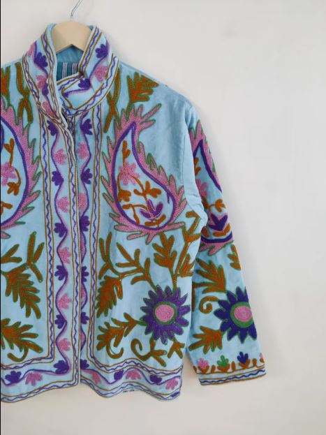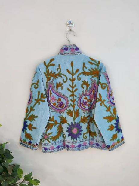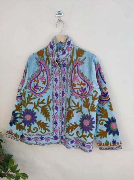 Chaqueta de Algodón Indio Suzani Bordada a Mano para Mujer, Transpirable, Informal, para Invierno, con Botones en la Parte Delantera y Tejido de Ganchillo