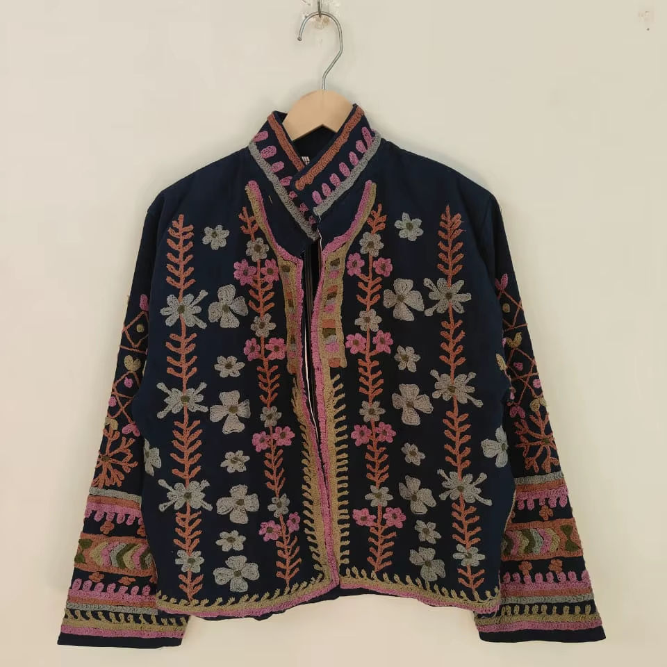 Chaqueta Suzani de Algodón Indio Bordada a Mano, Abrigo Hecho a Mano, Bata de Novia Estilo Boho, Chaqueta para Festivales, Regalo de Navidad