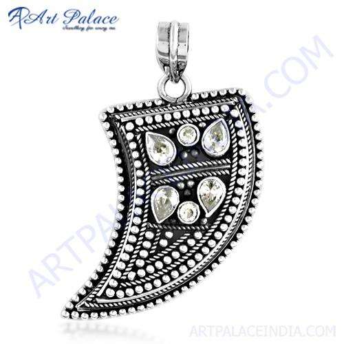 Colgante de plata con piedras preciosas de Zirconia cúbica de diseñador indio