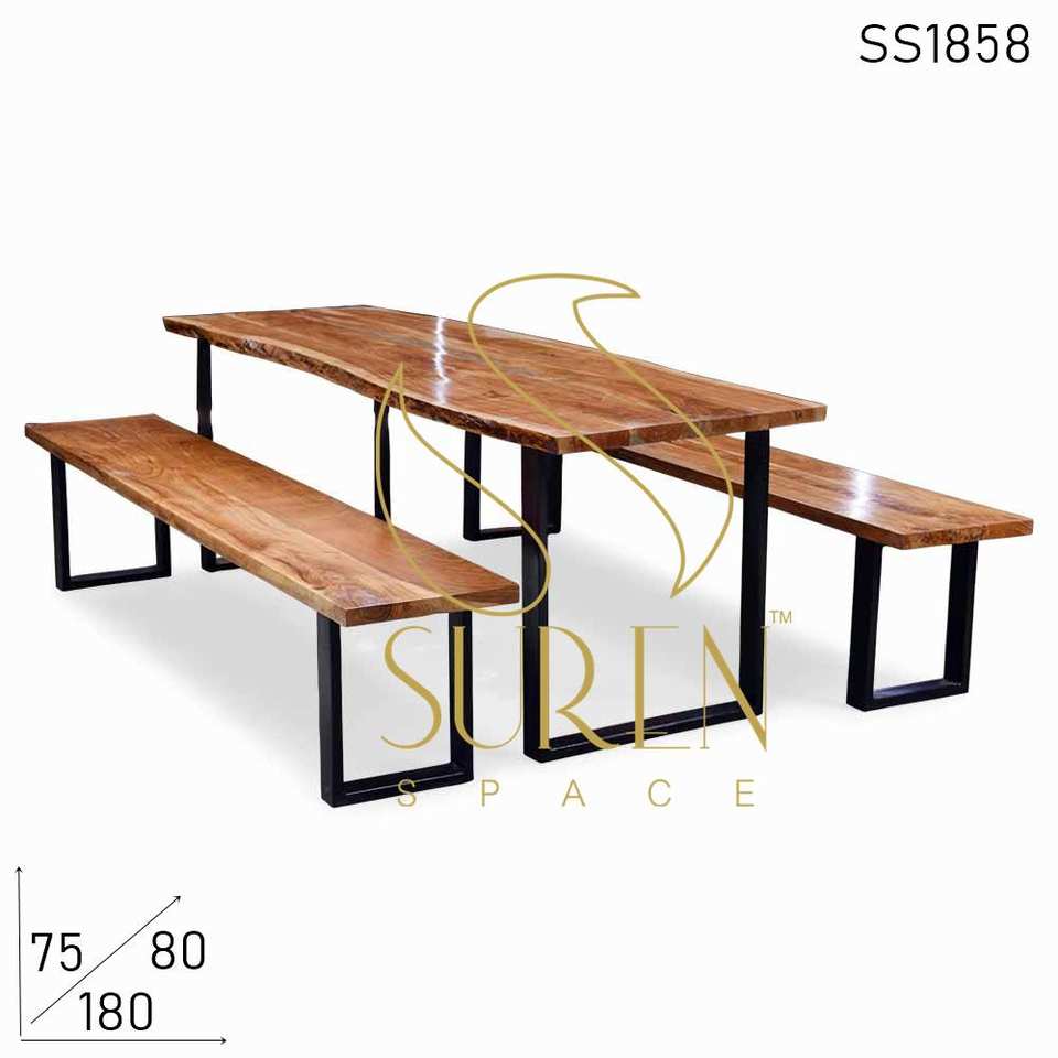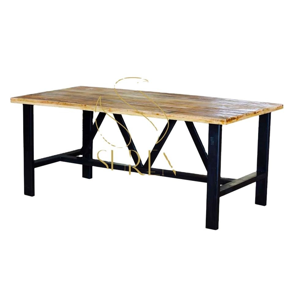 Mesa de madera de hierro hecha a mano de diseñador indio con Banco estilo único último para restaurante Hotel cocina comedor hecho a mano India