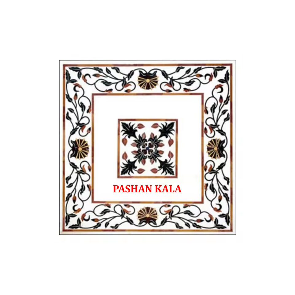 Diseño indio hecho a mano forma cuadrada pulido mármol blanco incrustaciones Mesa uso superior para comedor y sala de estar mesa superior
