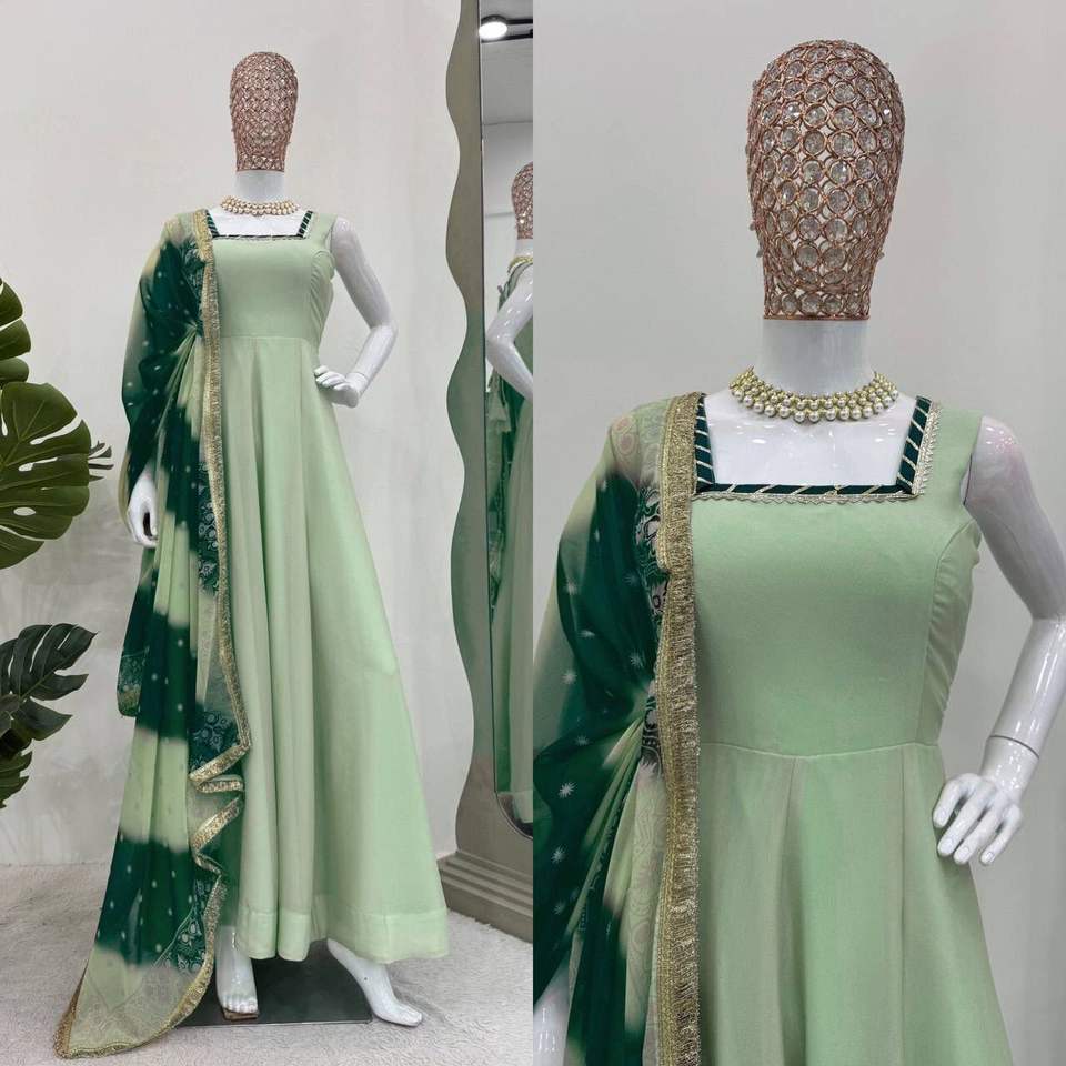 Faux Georgette Sequence Embroidery Gown And Pant & Dupatta