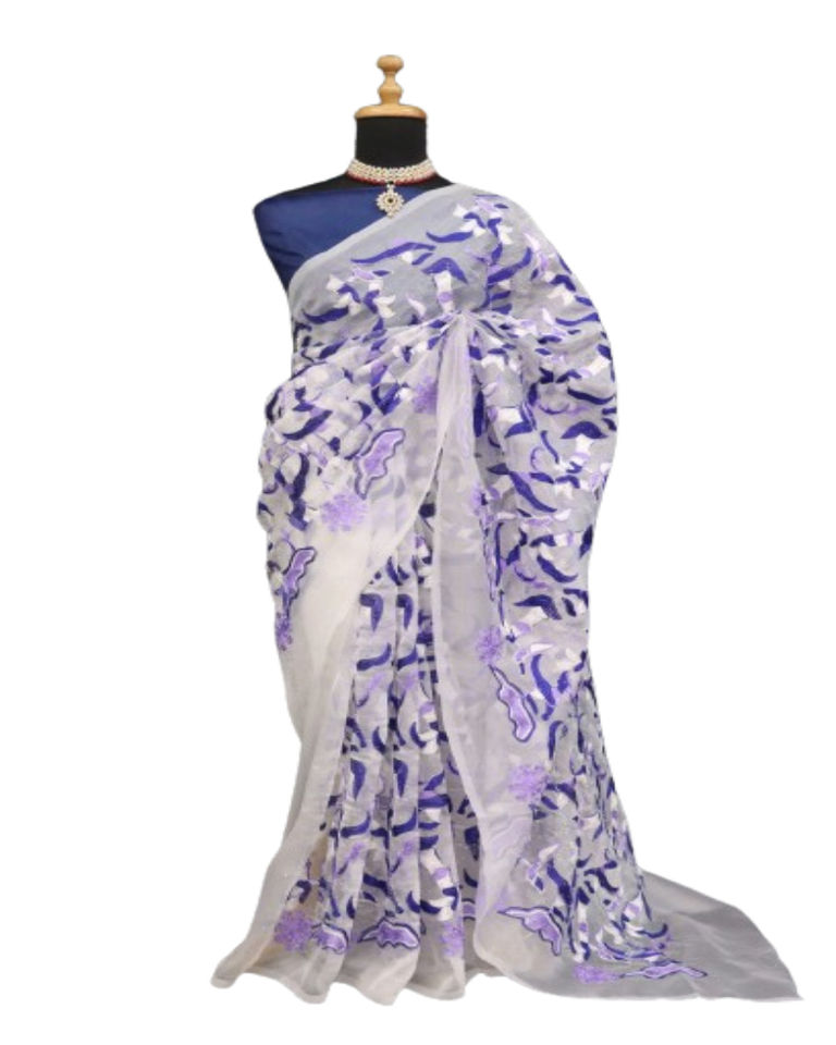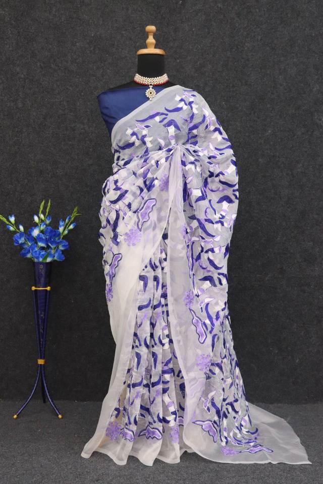 Sari de seda de diseñador indio ORGENJA con blusa Sari con estampado de bloque floral para bodas y ocasiones especiales hecho a mano en la India