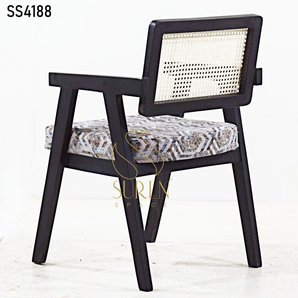Diseñador indio único último restaurante hecho a mano de madera sólida Silla de caña negra hoteles tela silla de asiento