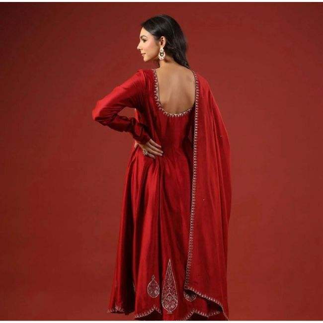 Vestido Anarkali Largo de seda Chinon de diseñador indio con vestido de trabajo bordado pesado para mujer para función de boda y ropa de novia