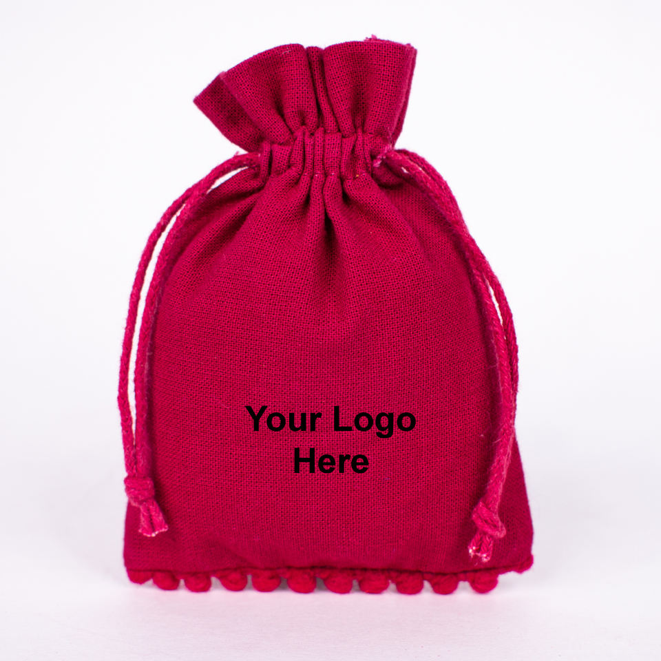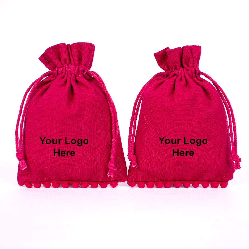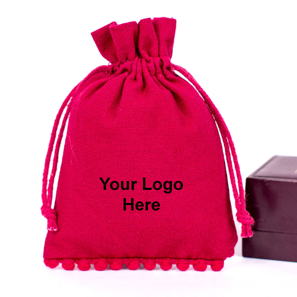 Bolsa de Regalo de Boda Hecha a Mano con Cordón Indio, Bolsa Organizadora de Joyería de Algodón Rosa con Logotipo Personalizado de Alta Calidad al por Mayor