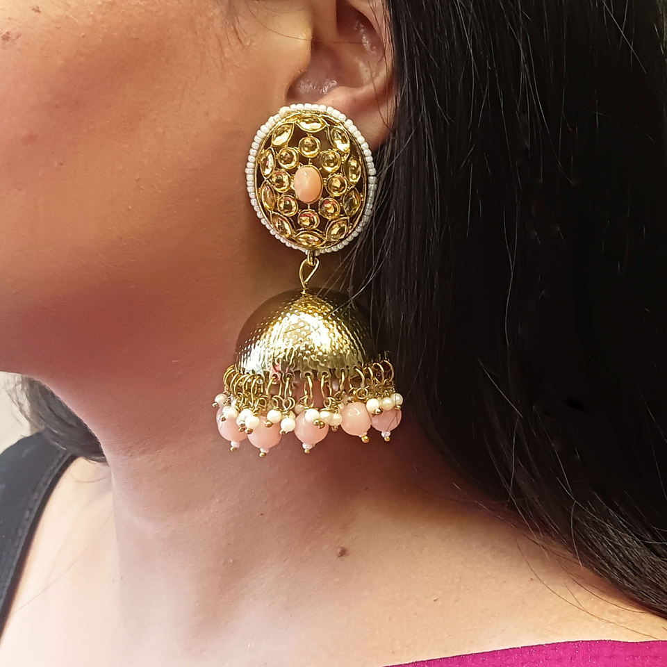 Conjunto de aretes indios, diseño antiguo, floral, Kundan, Boda nupcial, fabricante indio, joyería, conjunto de aretes Jhumak para mujer
