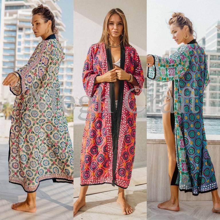 Kimono de seda con bordado indio, kimono bohemio, ropa de playa, venta al por mayor
