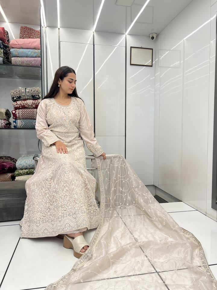 Ropa étnica india larga Anarkali Rasbery Material bordado vestidos para mujeres usan traje elegante con Rasbery Dupatta con trabajo