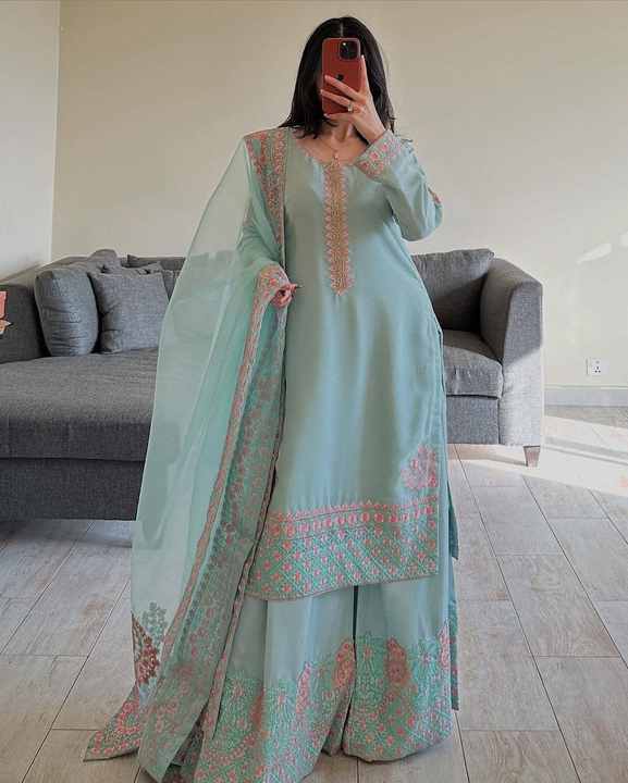 Característica:Conjunto Kurta Sharara Recto y Dupatta