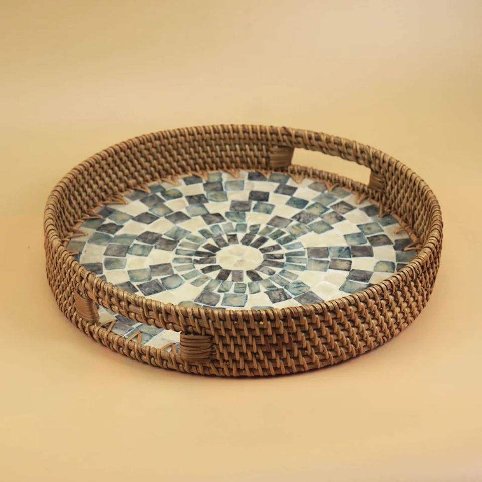 Exportador indio, bandeja de servicio de ratán ecológica, moderna, multifuncional, tamaño personalizado, Color Natural, hogar, Hotel, restaurantes, uso