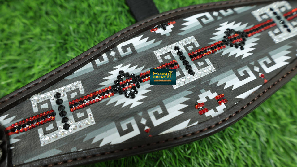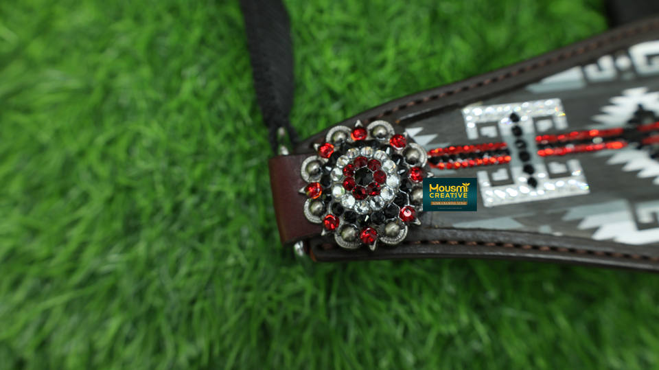 Nombre del producto:Cuero de vaca caballo Bronc Halter decoración con diamantes de imitación y Conchos