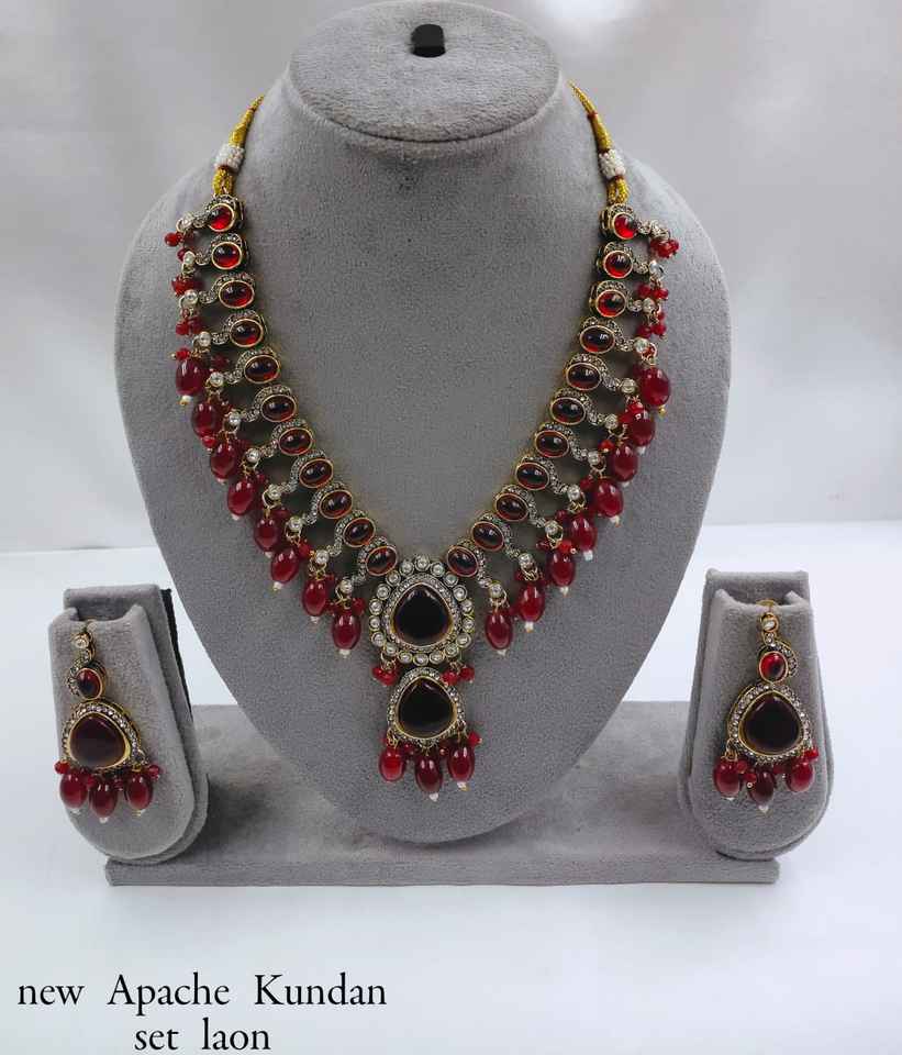 Conjunto de pendientes de collar de perlas de Gargantilla Kundan de tono dorado tradicional y de moda de lujo indio con Mangtikka para mujeres y niñas