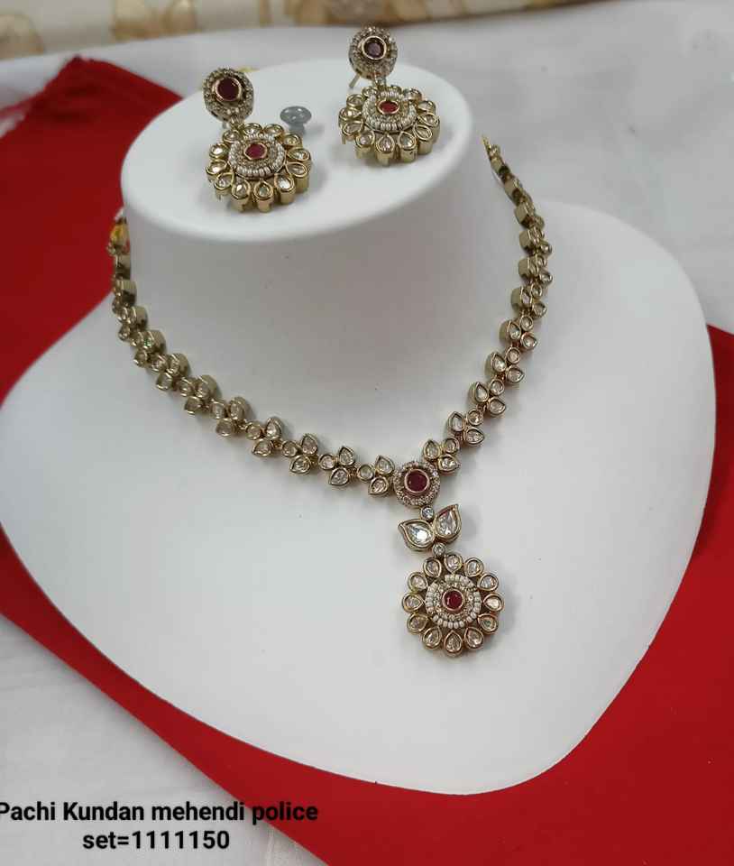 Flor India elegante tradicional y de moda tono dorado pesado Kundan perla gargantilla collar pendiente conjunto con para mujeres y niñas