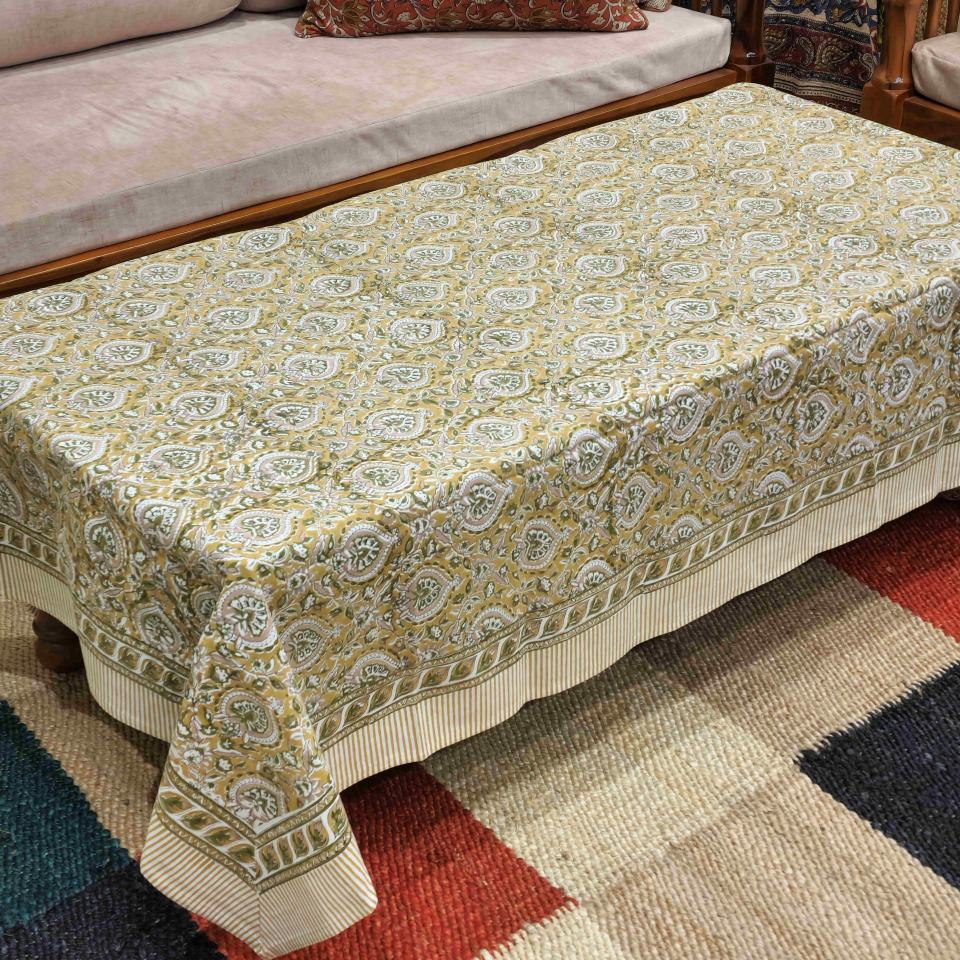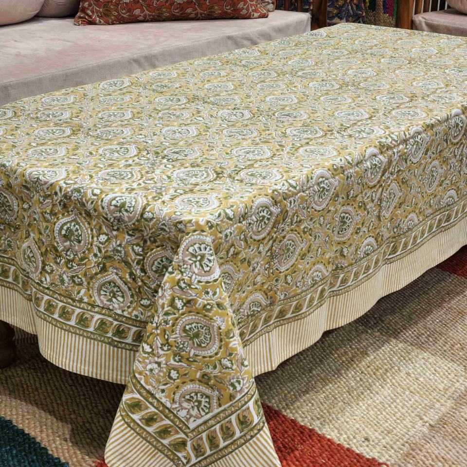 Mantel de Lino 100% Algodón con Estampado Artesanal Hindú y Bordado a Mano