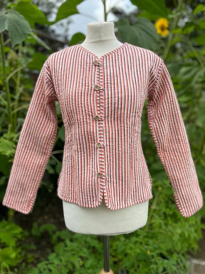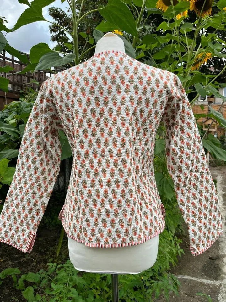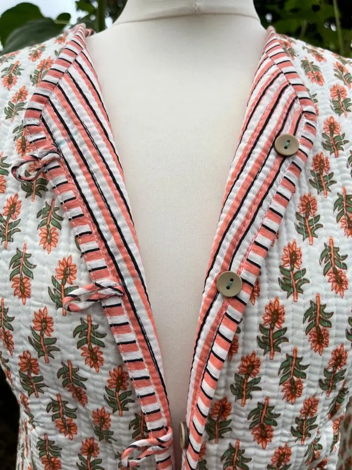 Chaqueta acolchada con estampado de bloque de mano indio para mujer, abrigo de invierno relleno de algodón transpirable, botón, nuevo estilo, regalo perfecto para su talla