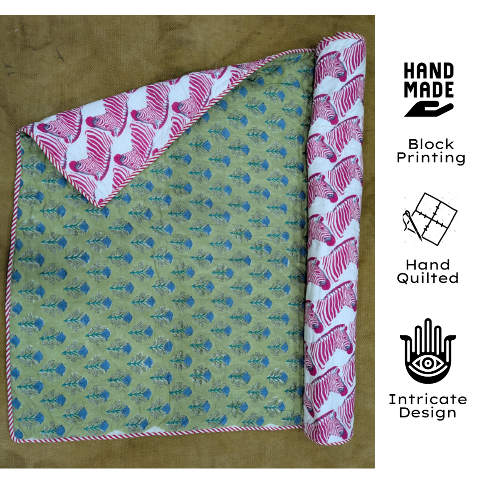 Indian Hand Block Print Soft Baby Quilt 60"X40" size Hand Stitched Colorful Durable 100% Cotton Reversible for home Travel use