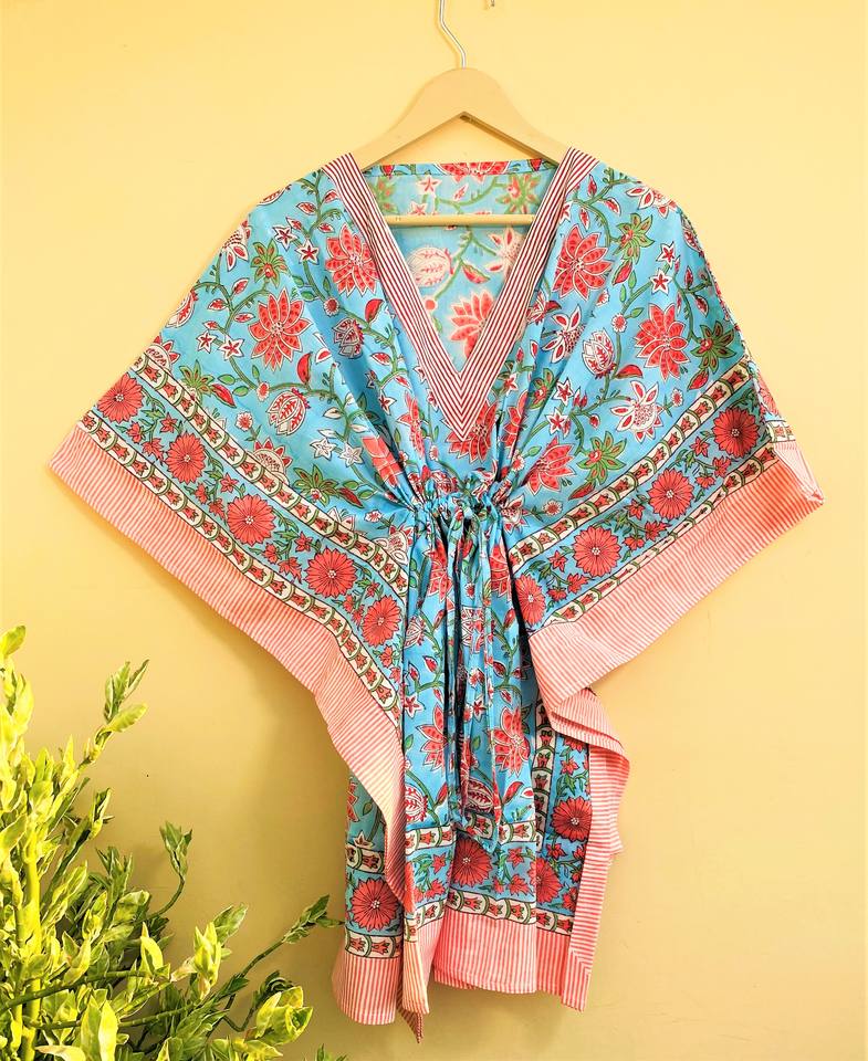 Vestido caftán largo de algodón puro 100% con estampado de bloque de mano indio, Túnica india, ropa de fiesta para mujer, producto a granel