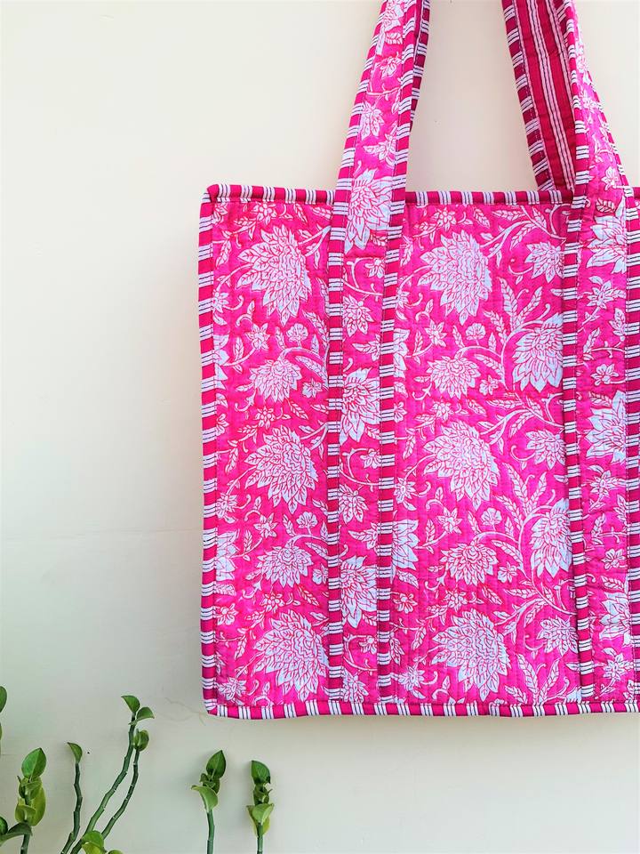 Bolso de mano indio con estampado de bloque de mano de algodón acolchado para mujer
