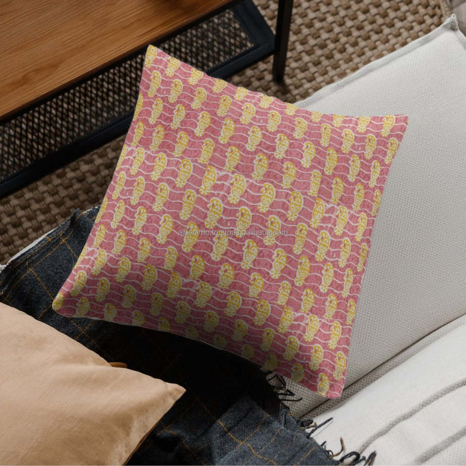 Nombre del producto:Fundas de almohada estampadas a mano con bloques