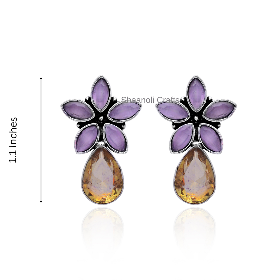Pendiente de flor oxidada de plata alemana hecha a mano india con trabajo de piedras preciosas de perno indio para mujeres para fiesta, ropa de boda