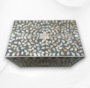 Joyero de resina artesanal indio con incrustaciones de estilo náutico amor hueso pulido para decoración del hogar
