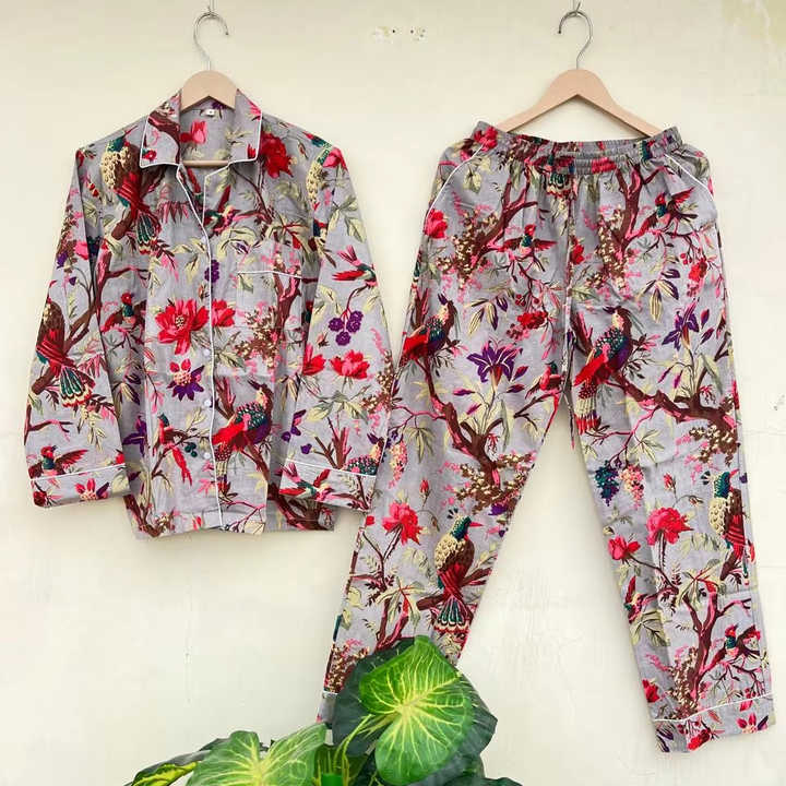 Ropa de Dormir de Algodón 100% Hecha a Mano en India con Estampado Floral para Mujer, Elegante, Lujosa, Informal, Traje para Caminar por la Mañana, Popelina de Verano, ODM