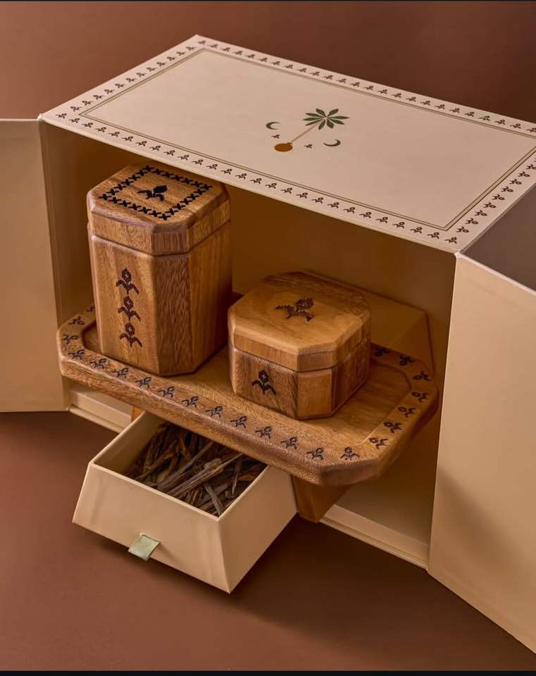 Juego de Mubkhar Árabe Hecho a Mano en India, Caja de Madera Ecológica, Porta Incienso Religioso, Quemador de Bakhoor, Diseño de Moda