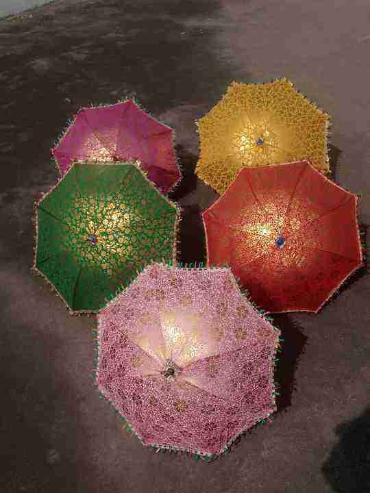 Paraguas de encaje decorativo de seda de código de barras hecho a mano indio paraguas de decoración pequeña decoración de Navidad fiesta paraguas de gota trasera
