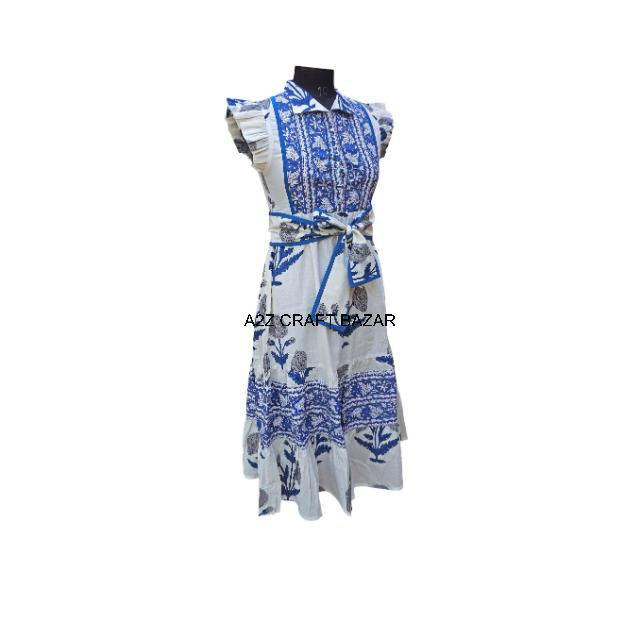 Vestido de algodón estampado en bloque hecho a mano indio para mujer, ropa de fiesta y uso diario de manga corta, 100% algodón