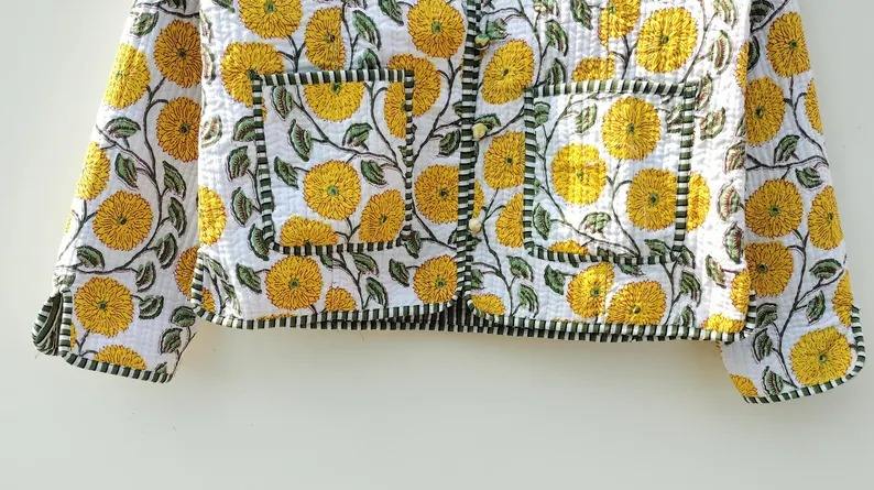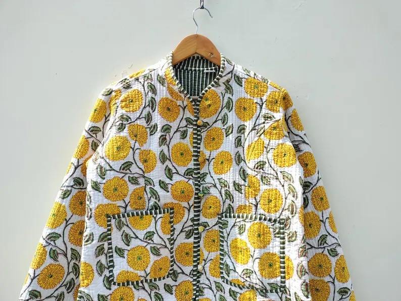 Chaqueta Acolchada de Algodón Estilo Boho Hecha a Mano en India para Mujer, Nuevo Estilo, Tejido Estampado Floral, Prenda Exterior Informal para Invierno