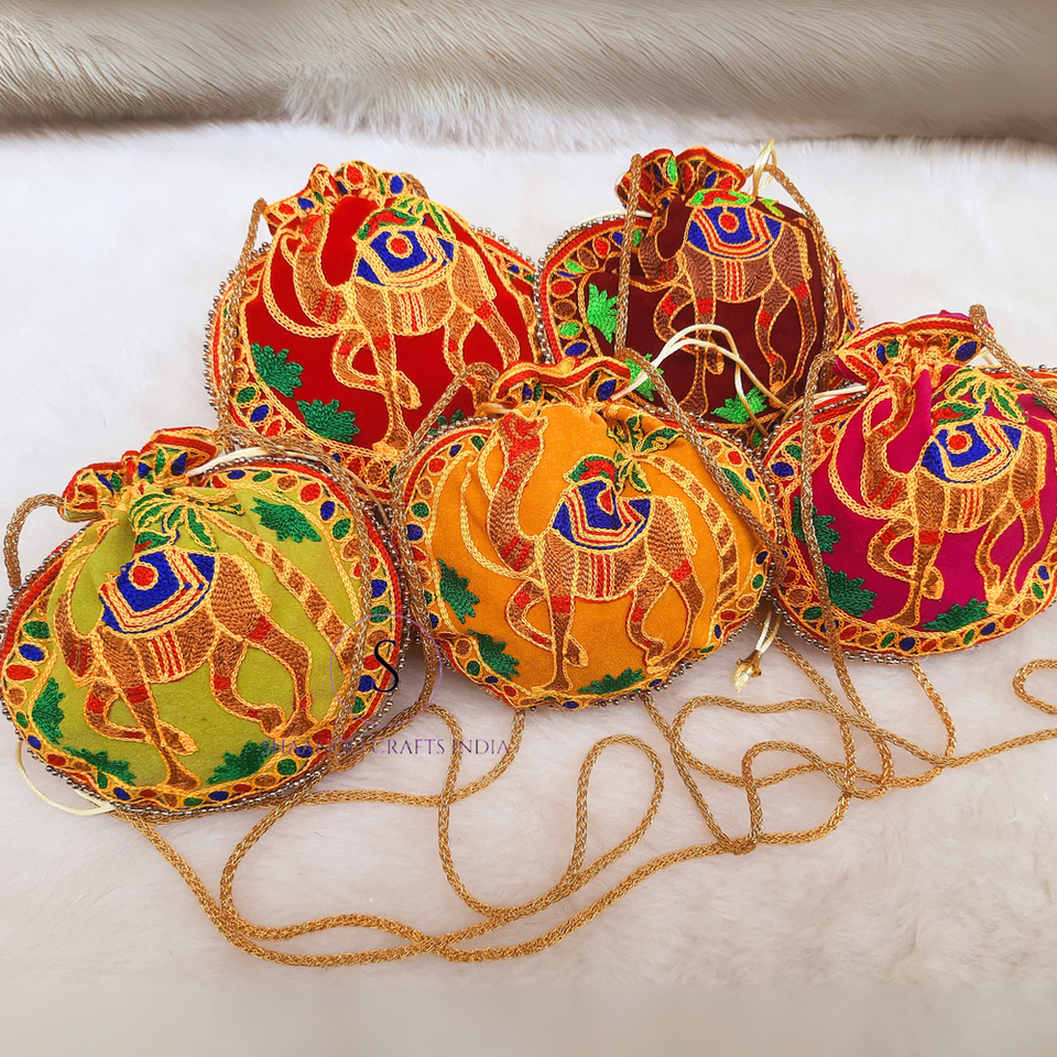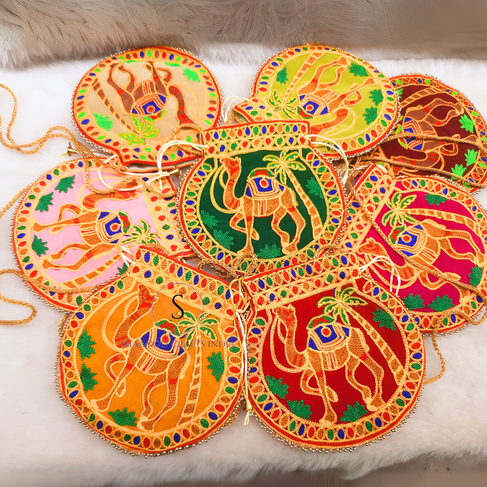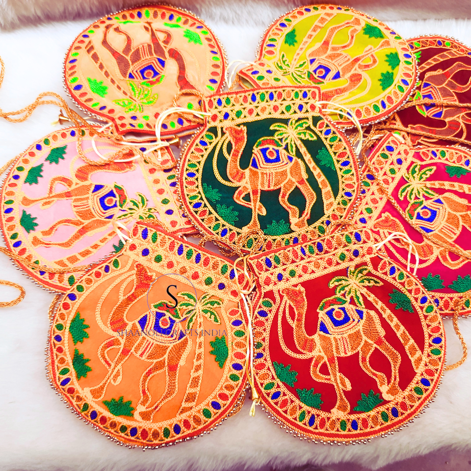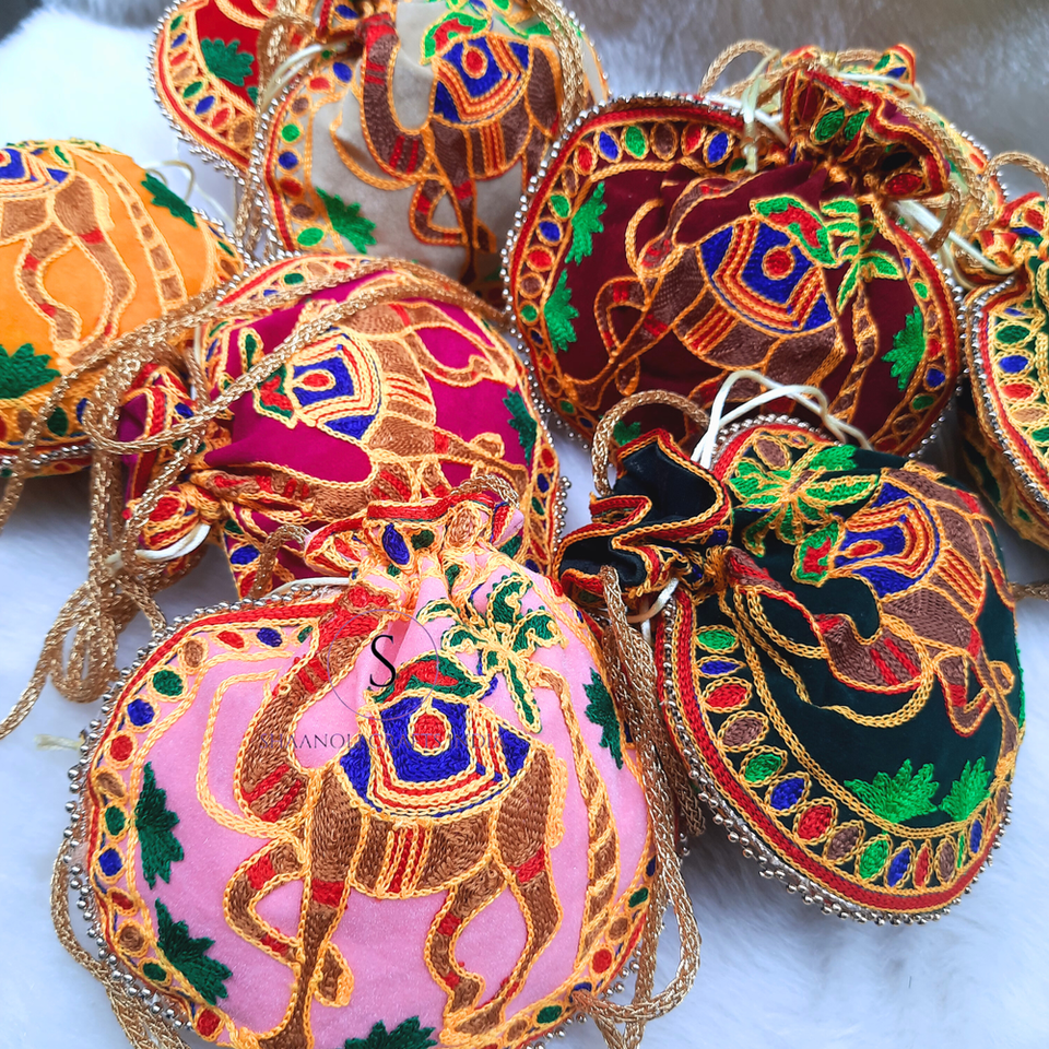 Nombre del producto:Bolsa de bordado de camello Indian Thread Work Potli