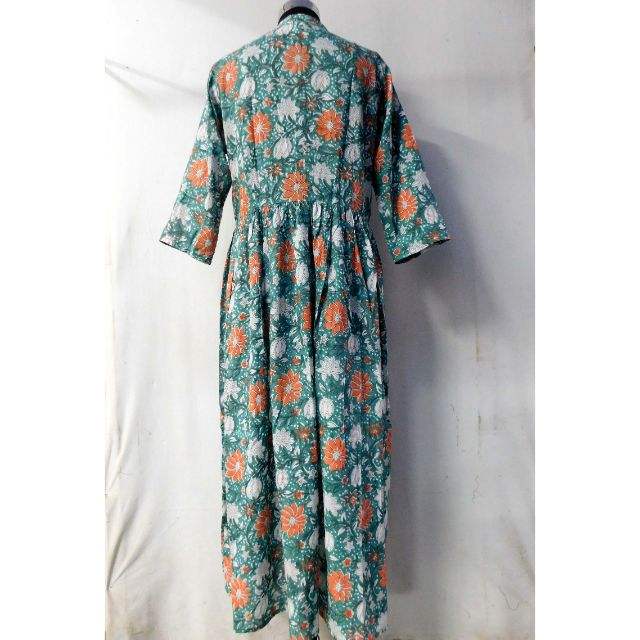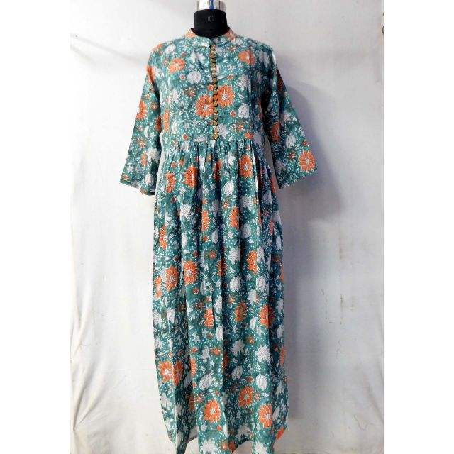 Vestido largo de algodón con abertura frontal para mujer, Túnica de algodón puro hecha a mano con botones para cerrar