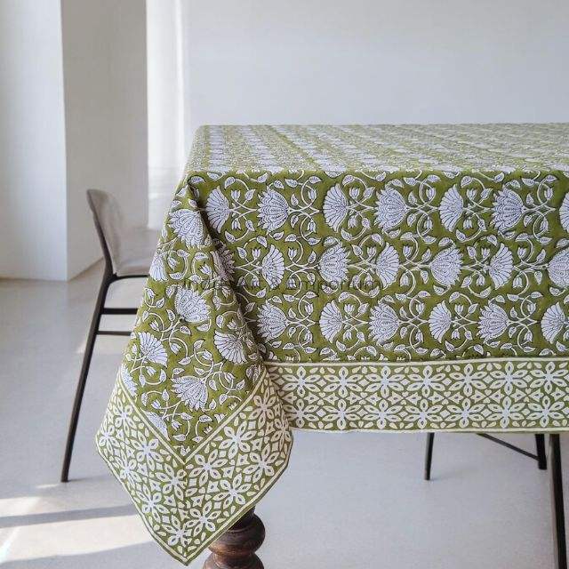 Mantel de algodón hecho a mano indio hermoso bloque de mano impreso cubierta de mesa de algodón para mantel de boda para la venta