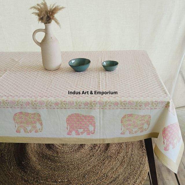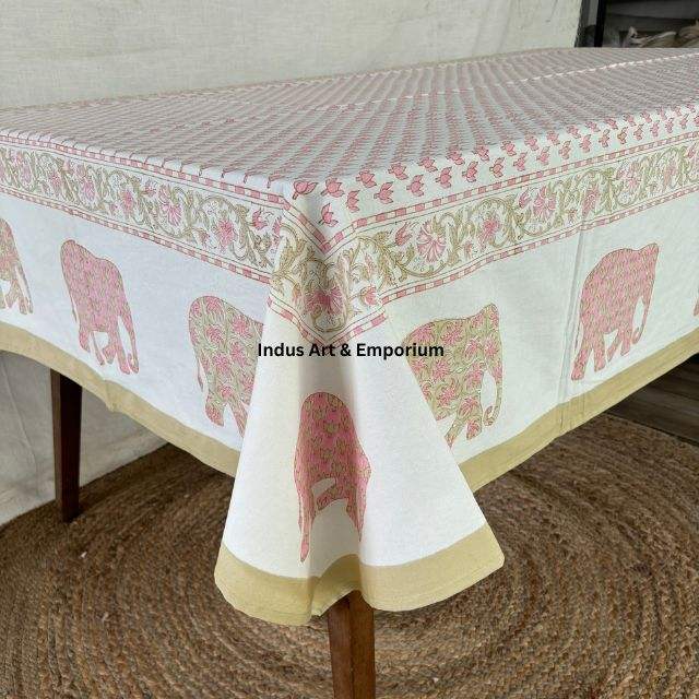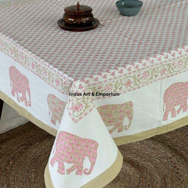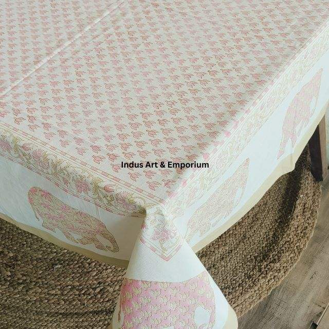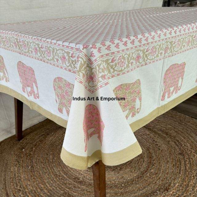 Mantel de algodón hecho a mano indio hermoso bloque de mano impreso cubierta de mesa de algodón para mantel de boda para la venta