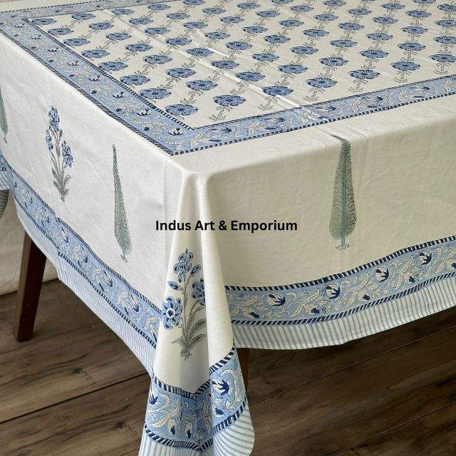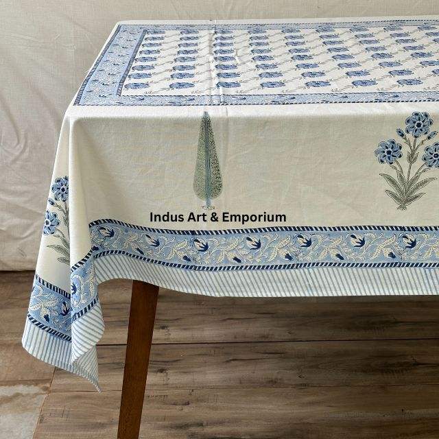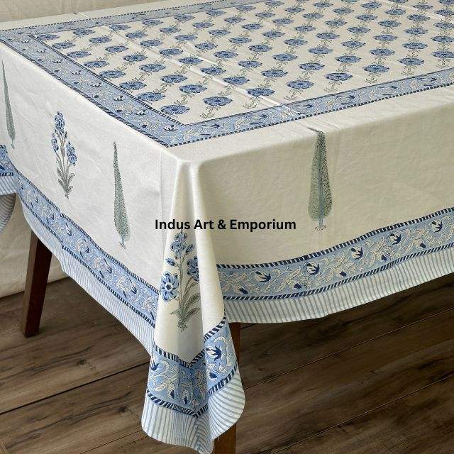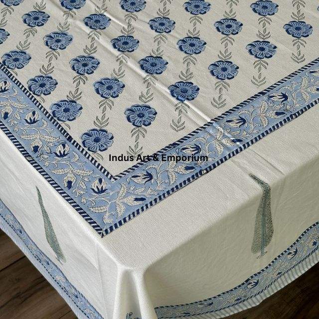 Mantel de algodón hecho a mano indio hermoso bloque de mano impreso cubierta de mesa de algodón para mantel de boda para la venta