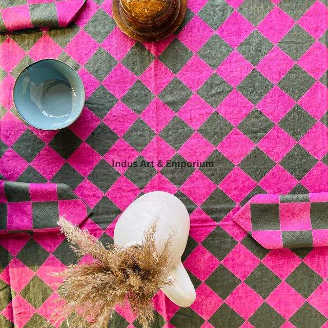 Mantel de Algodón Hecho a Mano en India, Hermoso Mantel de Algodón Estampado a Mano para Bodas, Mantel en Venta