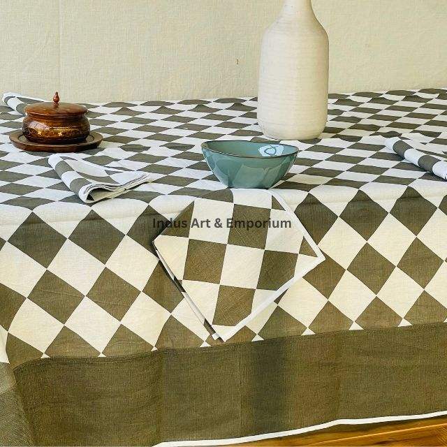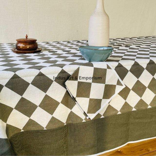 Mantel de Algodón Hecho a Mano en India, Hermoso Mantel de Algodón Estampado a Mano para Bodas, Mantel en Venta