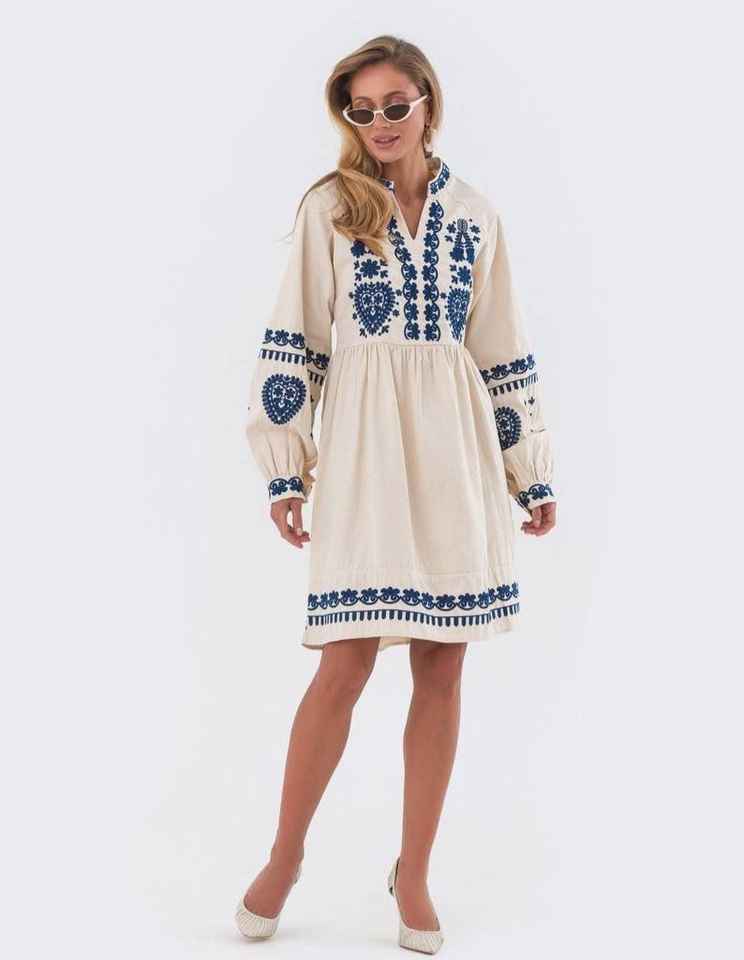 Vestido indio hecho a mano, bordado, lavable, estilo A, para mujer, blanco, floral, informal, hasta la rodilla, estilo ucraniano, transpirable y cómodo.