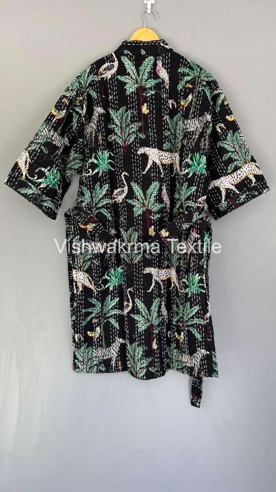 Chaqueta Acolchada Kantha Hecha a Mano en India, Ropa de Invierno para Mujer, Batas de Algodón con Rayas, Ecológica